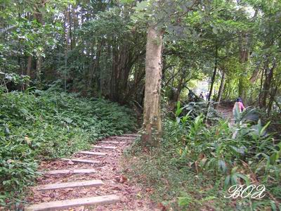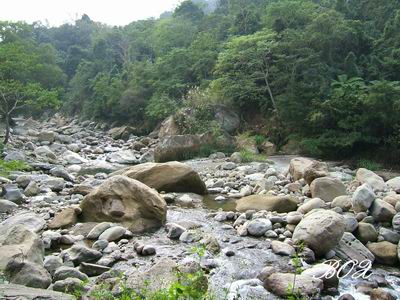 午餐過後來到蓬萊溪護魚步道,順便讓胃消化一下。我在護魚步道前的公佈欄看了看,發現一張公告,有點遲疑該不該走入步道內。布告上頭寫著,風災造成蓬萊溪自然生態破壞,待確認才能開放進入。公告日期是10月份,我看看老公,問著「可以進去嗎?」他說「可以阿!」領頭的他一下子消失在我的眼前,而我只好慢慢的跟著團隊的伴侶步行進入。