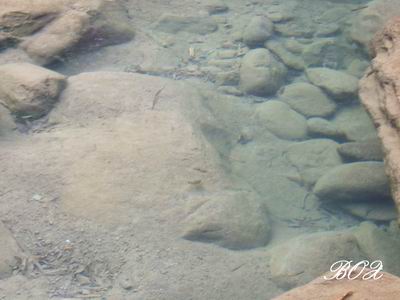 圖片拍攝溪中的魚群,似乎看不太清楚喔!