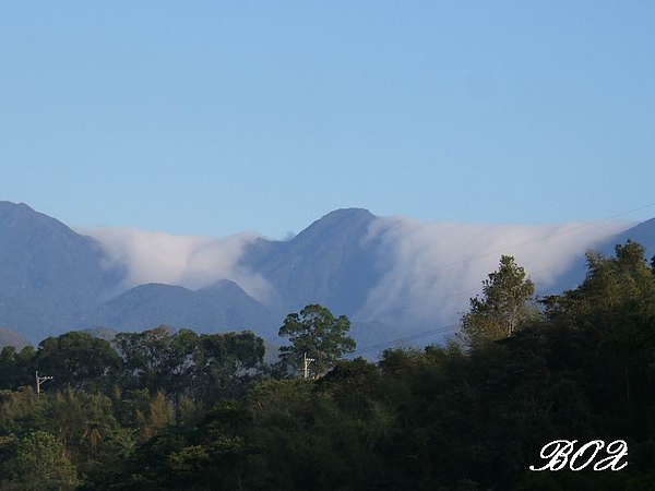 既然是分享美景,就不寫我們今天行程從哪到哪,只是剛好行駛於桃園縣復興鄉118縣道羅馬公路段,接近羅浮橋附近,突見眼前的山峰出現一道洪流般的瀑布,仔細觀看是雲呢!雲因為水氣頓時遇到熱氣流所形成的美景,山與山的連結低窪處雲往下降,就形成像瀑布般的美麗畫面。