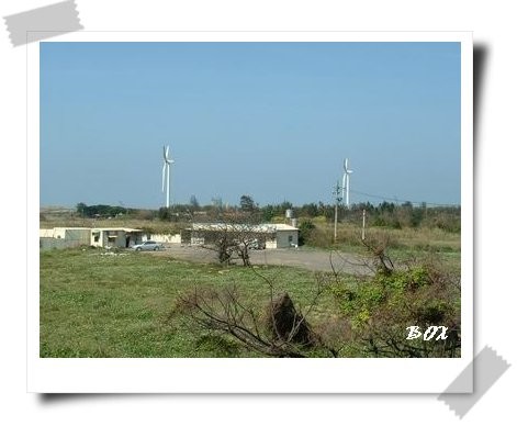 拍完新屋的油菜花後,時間也接近中午,於是老公提議到永安漁港吃午餐。一路上經過的風景,不外乎油菜花田,就是咸豐草田,綠油油的讓人看了心情好愉快。遠遠的還看到大潭的風力發電風車,這是我頭一次看到巨大的風車,靠著風力在風中轉阿轉的,當然要停下車來拍個幾張。
