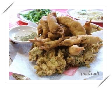 到三星鄉當然不忘點卜肉嚐嚐,一盤卜肉除了原有的肉類外,還配上幾塊高麗菜與蔥的蔬菜油炸品,嚐試之下真不覺得卜肉的口感有多美味,是店家的製作問題嗎!?但是看每桌都點了同樣的食物,我想應該是不差,只是傳說中的卜肉讓我有點失望,炸蔬菜反而好吃多了。