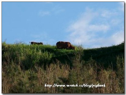 Wisely難得來,想到至高點拍拍照,於是一行人往原野牧場後山走去。七星潭的至高點,在原野牧場旁的小山丘上,亦是自行車道終點。車停於原野牧場的停車場後,步行前往。我望了望距離,有點意興闌珊,距離並非很近,幸好發現捷徑,索性翻越自行車道或是狼狽的鑽狗洞的通過圍籬,沒人看到一夥人的糗態,高興的省了一大段腳程。