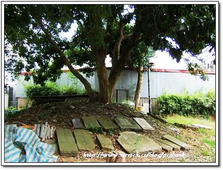 [宗祠後頭還保留祖先的墓碑,很有歷史考究的文物]