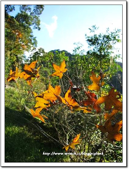[黏在蜘蛛網的楓葉]