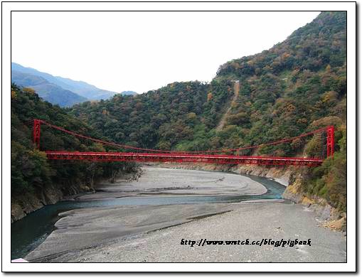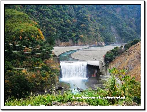 說來幸運,走了幾次北橫,無意的路邊停車,卻讓我們遇到巴陵攔砂壩。巴陵攔砂壩建於大漢溪曲流群中段的隘口上,奔騰的水勢急流而下,壯觀美麗。若不是路旁有電纜線阻擋,拍出來的應該更具美感。巴陵吊橋也是一處美麗的賞楓景點,火紅巴陵橋旁的楓樹顏色多變,讓人有些不捨離去。