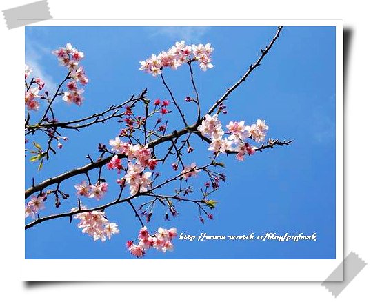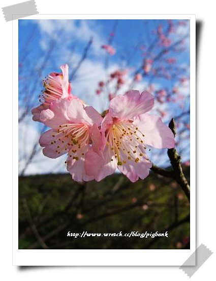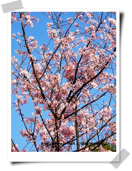 陽明山上的花季好美,我喜歡吉野櫻掛在樹上粉粉的和藍天白雲的對稱清爽樣.<br />