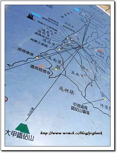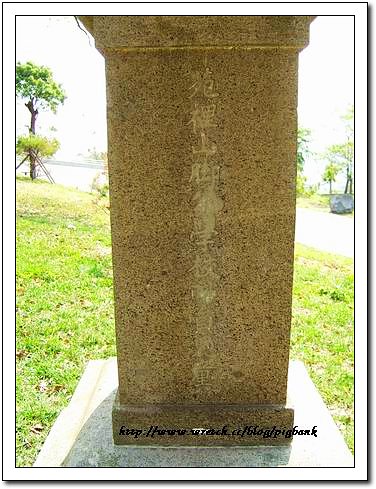 至高點有一個二等的三角點,通霄鎮歌的碑文,景觀眺望圖。從景觀眺望圖能知道附近的景點與所在位置,在此處晃了許久,先生提醒才想起得找尋神社。由於公園內沒地圖標示,我們只能憑感覺找,山勢一處面海,一處面對市區,我們想應該是面對市區才對。如果從通霄國中進入後往右,就是神社所在地,只是我們進入後先行左邊,所以不知另一頭就是神社。