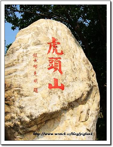 我們到達通霄國中往左上山,先到虎頭山的至高點拜訪。虎頭山原名虎嶼,位於苗栗縣西海岸丘陵近海最高處,又名「旗山」,海拔93.42公尺,實際面積為9.61公頃。虎頭山自清朝以來,僅因日據時代地勢險要,而設有海空監視哨及轉播台,並有神社一處,及紀念碑(含古砲一尊)。[此節錄部份虎頭山公園建設簡介]