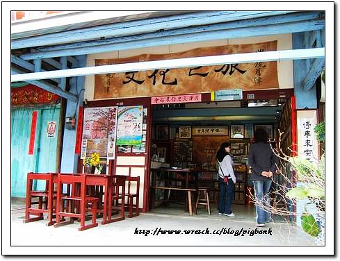 步出八角樓沿路往下走,不遠處即是月津文史發展協會,裡頭的服務人員很親切,不過似乎會「看人」解說。我自顧的看著牆上掛的古老照片,本來解說員善意要幫我講解,但此時又有旅人上門,她們趕忙上去招呼,還不時推銷鹽水著名意麵,那種感覺讓我卻步。因為在此的工作人員講解並不認真,推銷產品倒是一流,若無意購買,似乎有點不太理睬。不然就是趕忙拿出簽到簿,請旅客留下大名,其意義是代表他們文史推展的成績,當然填寫人數越多越好。[我想推銷或許是不得已的手段,也許是文史館的資金來源。]