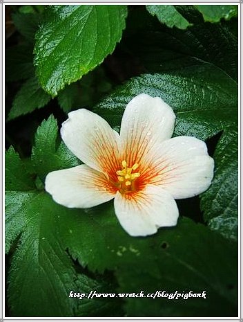 當整個山都逛完準備走人之際,眼尖的先生望見一地被雨打落的桐花,不死心的我努力往前走,發覺這區的油桐都有開花跡象,數量還不少。不過跟以前拍攝的桐花稍有不同,仔細研究下發覺,樹齡較低的桐樹,開出來的花朵,花瓣呈現微紅的絲狀,而且花瓣比較橢圓,不過都是如假包換的油桐花。