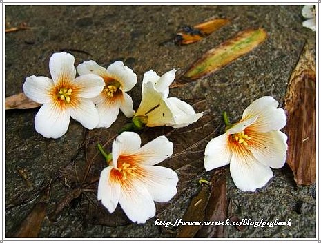 美美....被雨打落一地的油桐花有另一種美感<br />