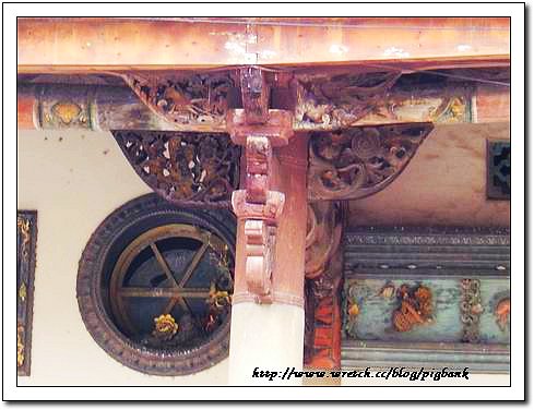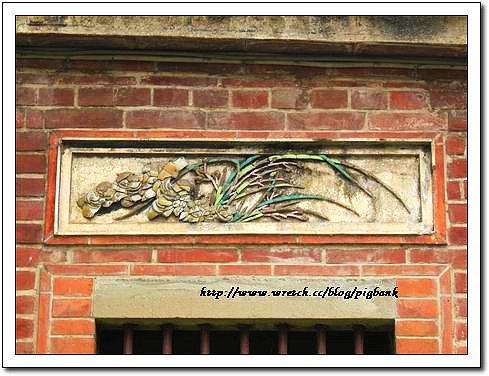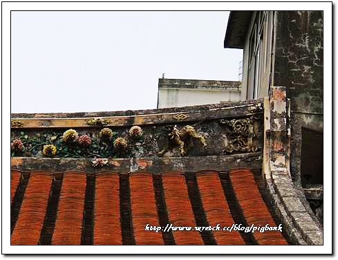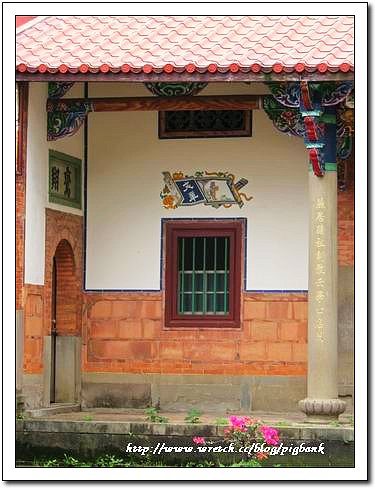 民國13年興建至今,已有80多年歷史,從未翻修,觀察正廳旁的窗飾,有雕花圖案,樑柱的木雕也頗有看頭,屋樑皆有雕花剪黏,雖然歷經歲月洗禮,仍能看出美麗的圖案。水車垛、樨頭也有雕花剪粘,不過剝落嚴重,上頭的圖案得猜測動物圖形,對我而言有點困難。