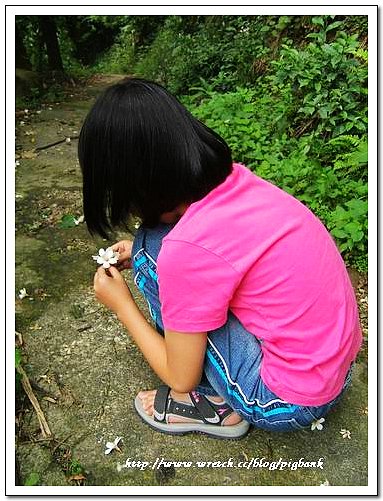 進入桐花小徑,猶如進入一處大型的自然教室,標題之所以稱為親子行,並非強調是一家人一同前往,而是鹿寮坑是很適合小朋友走訪的地方。以賞花為藉口,實際是讓孩子在自然的環境裡,找尋都市看不到的動物、昆蟲與蝴蝶,從漫步行走找尋花兒的同時,發現大自然的奇妙景象。