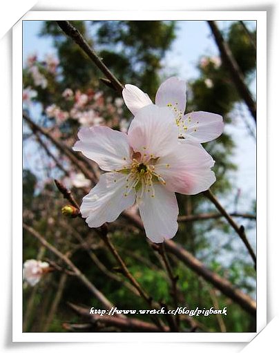 本以為淡淡三月天最適合唱誦杜鵑花,來到這裡會發覺,還有一種花也開得茂盛又美麗,那就是櫻花。出遊那天是4月1日的愚人節,以為三月份除了阿里山上的櫻花盛開外,其他地方的櫻花應該已經凋落,或許是品種的關係,讓我們不經意的遇見她美麗的模樣。