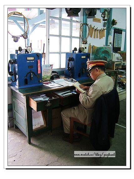 離開前在站長室遇見站長,我要求拍照留念,他誤以為是女兒要與他合照,他喚女兒「妳過來!」搞不清楚狀況的女兒順應要求,站在他身旁合拍了一張。由於沒拍到站長獨照,我又再次請求,他大方的點頭允諾,並送我一張他的名片。拍照時一旁像是來探班的站長女兒,跟我說「站長算是國寶級的人物囉!」我點頭微笑回應,贊同這樣的說法。