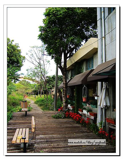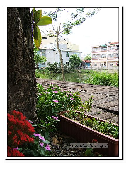 車站旁的倉庫改裝成藝文空間,到訪的早還沒開門營業,只能從窗外體會。屋旁一潭漁塭,枕木佈置的人行步道,幾張雙人座椅,倚窗種植花草。火龍的紅繡球、日日春與紫葉酢醬草,把這一小片天地活絡起來,我在這裡享受旅途中難得的悠閒,躲過炙熱的南部冬陽。