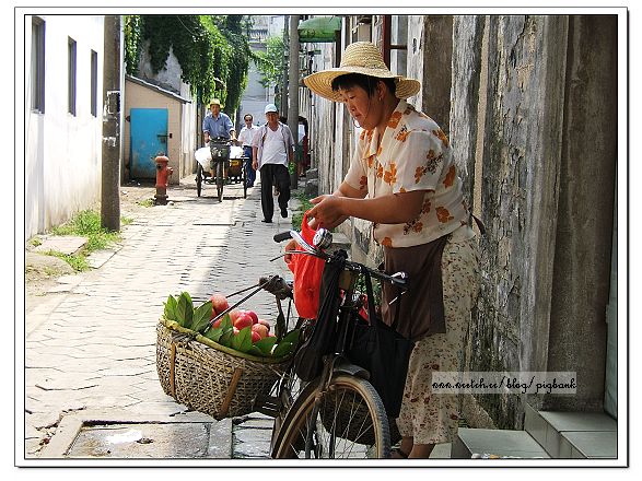 [很喜歡這張賣水果媽媽的照片,在蘇州的巷弄間相遇,她認真的工作態度讓我動容]