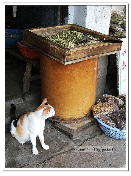 [貓咪在西塘人家常見,貓貓的數量比狗狗還多,當貓與狗相遇時,狗狗溜得極快]