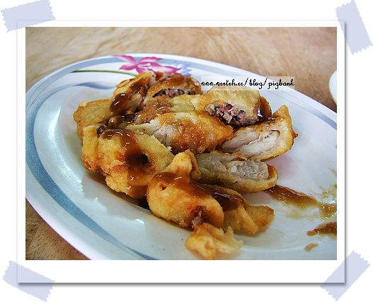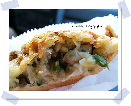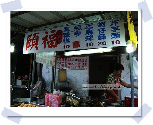 牌坊前也有一家賣炸粿的店,一份蚵仔酥只需20元,當然要趁便宜多嚐試,只是不知是否吃太多蚵仔,還是蚵仔沾多了麵粉,感覺上普普,不過還是值得嚐嚐,畢竟料多便宜,不嘗試有些可惜。