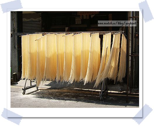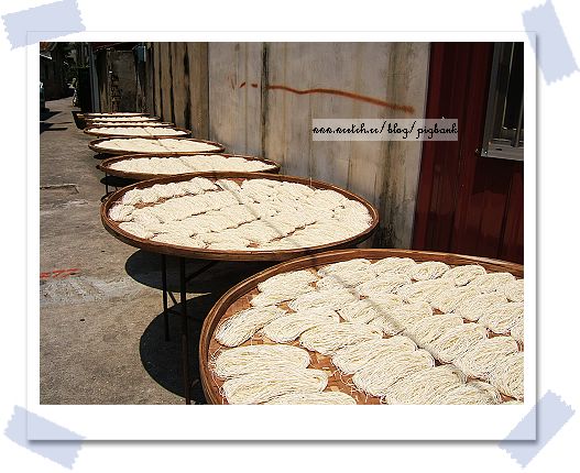 金門的麵線也是美食之一,以傳統手工製麵技術,配合天然的氣候曝曬,不添加防腐劑,具Q勁又不死鹹。搭配鮮蚵來一碗,只見蚵仔滿佈碗面,材料費似乎就超過50元的價值,要不是天氣熱不太餓,倒想一碗接一碗吃個過癮。