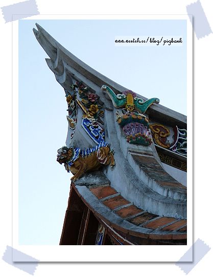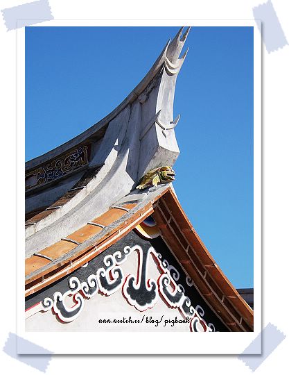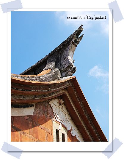 [宗祠的燕尾,金門與台灣的不同處在於屋脊還多了龍隱]