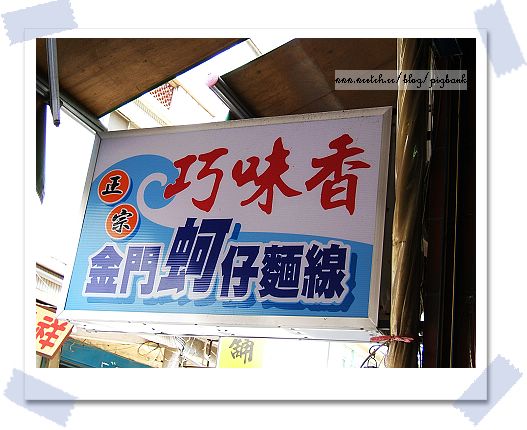 在金門那幾天,為了看風獅爺或聚落常錯過用餐時間,原以為跟台灣一樣,不用準時到餐館還是有飯吃,結果發覺似乎不是這樣。偶爾錯過20分鐘不到,自助餐的菜色已經清空,加上聚落並沒什麼店舖,麵店與餐館少得可憐,想好好吃一餐還真有點難。不過話雖如此,儘管錯過用餐時間,還是可以吃吃點心來彌補正餐的不足。 山后民俗文化村的「王阿婆海蚵煎」,先來盤嚐鮮。新鮮的石蚵加上太白粉與空心菜,豐富的石蚵比起一般的蚵仔甜美有嚼勁,料多實在,一盤雖要價50元,也甘心奉上。
