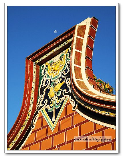 [金門的廟宇,上頭為未消失的月亮]
